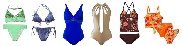 - пляжные купальники. Предназначены для купания в естественных водоемах и отдыха на пляже. Задача такого купальника подчеркнуть красоту и отменный вкус своей обладательницы, замаскировать "нюансы" фигуры. Ткань такого купальника должна быть приятна к телу, устойчива к соленой воде и УФ лучам, не выгорать на солнце. Пляжные купальники производители часто шьют из ярких тканей, украшают различными декоративными элементами: рюшами, металлофурнитурой, бусинами, стразами, завязочками. Девушки с хорошей фигурой чаще всего для пляжа выбирают раздельный купальник бикини, позволяющий загореть большей поверхности тела. Слитный купальник сослужит хорошую службу, если его обладательница предпочитает активный отдых на пляже, например, водные развлечения, пляжный волейбол. Компромиссом между раздельным и слитным купальником служит танкини – раздельный купальник с длинным топом на косточках и трусиками, либо шортиками. Танкини позволяет замаскировать некоторые недостатки фигуры, кроме того, такой купальник хорошо подойдет и для активного отдыха.
