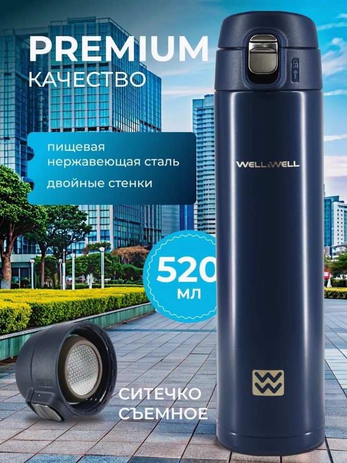 Термокружка стильная и надежная, изготовленная из высококачественной пищевой стали AISI 304. Благодаря вакуумной термоизоляции, она сохраняет тепло до 8 часов, а холод до 12 часов. Температурные показатели указываются для полной термокружки. Как только объём жидкости в термокружке уменьшается, снижаются и теплоизоляционные возможности. На время сохранения тепла влияет также условия окружающей среды. Чтобы вкусы и запахи не впитывались, тщательно промывайте термокружку после каждого использования. При этом, чтобы не нарушить полировку колбы не используйте абразивные моющие средства или жесткие ёршики. Рекомендуем использовать ершик арт. 195936826 Для предотвращения размножения бактерий и появления неприятного запаха храните термокружку с открытой пробкой. Если привкус или неприятный запах всё-таки появились, залейте термокружку водой с растворенной в ней содой, оставьте на несколько часов, после чего тщательно промойте и высушите термокружку. При аккуратном использовании и выполнении нехитрых правил по уходу и хранению, термокружка прослужит вам долгие годы. Крышка открывается одним нажатием кнопки. При этом, благодаря защите от случайного открывания, вы можете быть уверены в 100% герметичности термокружки. Корпус термокружки выполнен из нержавеющей стали 18/8 AISI 304 Stainless Steel, крышка-пробка изготовлена из пищевого пластика, а прокладки-уплотнители из пищевого силикона. Это обеспечивает полную герметичность и защиту от протеканий. Термокружка WELL&WELL - это не только практичный аксессуар, но и стильный элемент вашего образа. Ее элегантный дизайн и прочный материал делают ее идеальным выбором для активного образа жизни. Срок службы этой термокружки не ограничен, поэтому она будет радовать вас на протяжении долгого времени. Выбирайте термокружку WELL&WELL и наслаждайтесь горячими и прохладными напитками в любое время и в любом месте!
